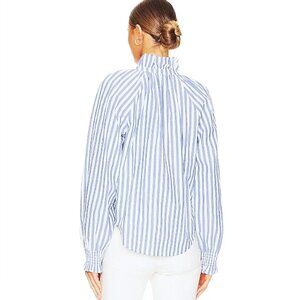 Veronica Beard Calisto Washed Blue White Ruffle Collar Button Revolve Shirt S