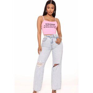 Fashion Nova ✦ Don’t Disturb My Vibe Tank ✦ Pink Cropped Graphic Spaghetti Strap