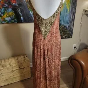 Embrace elegance with this chic paisley maxi dress, featuring stunning gold accents. Perfect for any occasion, this dress adds a touch of sophistication to your wardrobe.