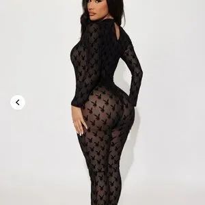 Elegant black mesh bodysuit adorned with iconic bunny motifs. Comes with matching bunny ears.