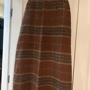 Stylish brown plaid midi skirt. Classic design. Perfect for any occasion. Vintage!! Lined, with pockets!