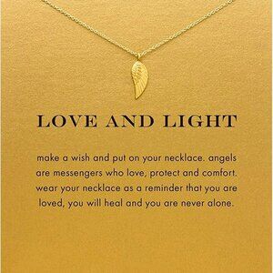 About this item Necklace Meaning Make a wish and put on your necklace. angels are messengers who love, protect and comfort. Wear your necklace as a reminder that you are loved, you will heal and you are never alone. Message Card Start with a greeting card to show that you value your girffriend, colleagues and more. We hope everyone get the best wishes and the sincere words from time to time pull at your heart. Size The necklace chain measures 16.5 inches in length and includes a 2-inch extension chain for adjustable fitting. Secured with a secure lobster clasp. GIFT IDEA Packaged with a love heart envelo
