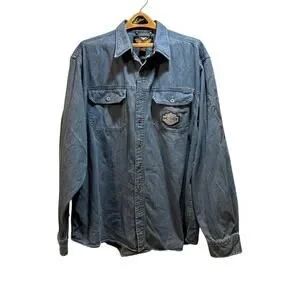 Harley Davidson blue denim button down long sleeve shirt men’s 2xl tall