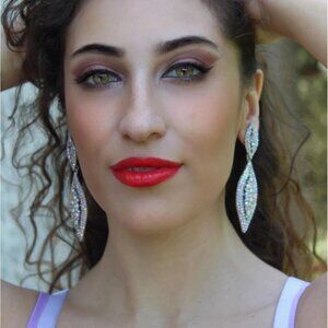Product details Item display length 3.3 inches Material Crystal Metal type Alloy Back Finding Push Back Earring design Dangle Gem type No Gemstone About this item WEDDING EARRINGS: The iridescent earrings for prom could match almost any look you have and be great for wedding party or wearing daily. The stylish design will adds luster to your appearance and personality on