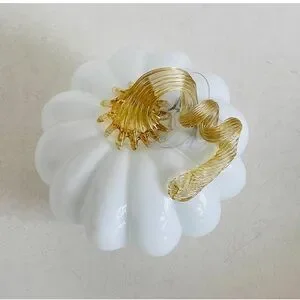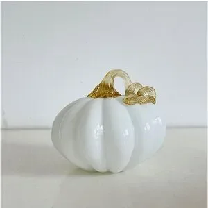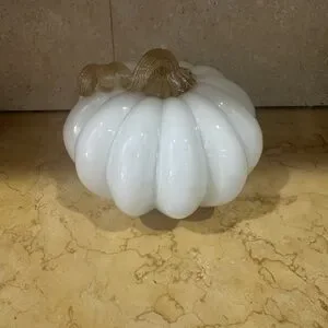 Elegant white glass pumpkin with gold accents. Perfect for home decor.