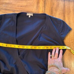 Neiman Marcus Ruffled Navy Wrap Dress, size 14, Classic Church Work School Girly
