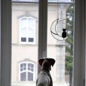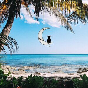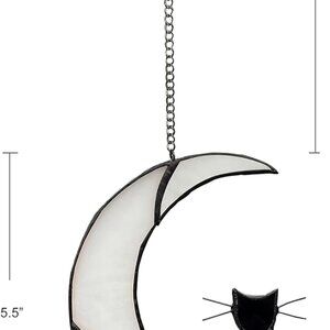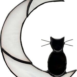 Black Cat On White Moon are easy to hanging on window/wall/garden/restaurant/cafe/bar/office etc. It can be memorial supplies or great gift for lover. Cute cat bring you happiness every day. condition:100% product new material:Stained glassl size:approx 5.5" X 4.3" color:White/black