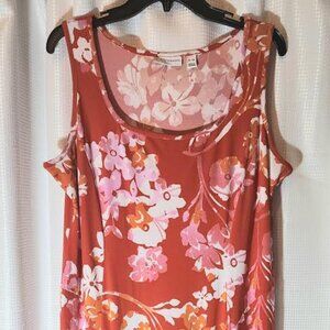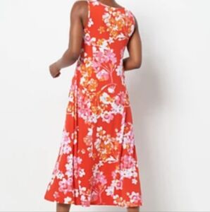 Susan Graver Sleeveless Midi Dress PXL Square Neck Coral Bloom Fit & Flare NWOT