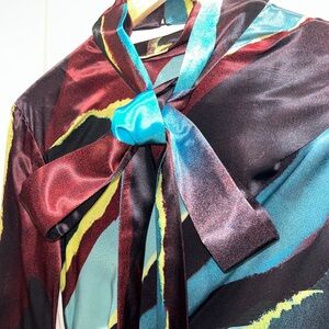 • Neckline: Scarf neck tie detail