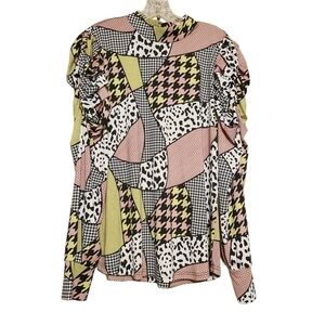 Ashley Stewart | Women's Mixed Print Drama Puff Sleeved Top (Size 14/16)