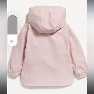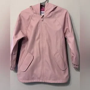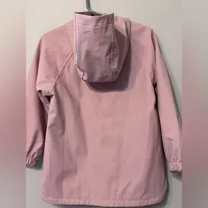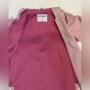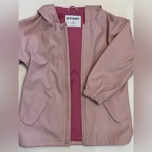 Old Navy girls water-resistant hooded jacket. Super cute jacket to keep your little one dry. Jersey lined. Full length zipper closure. Two diagonal velcro-close flap pockets. Excellent condition. From a smoke free/pet free home.