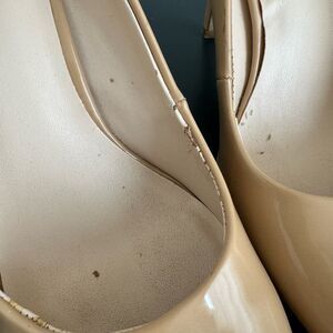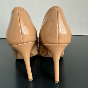 $5/$35 Nine West Patent Leather Nude Tan Pump Career Office Wear Size 6 Almond