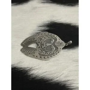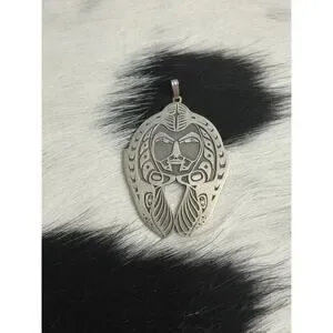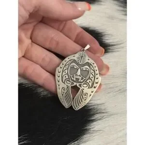 Huge Native American Sterling Silver Indian Skull Chief Headdress Pendant