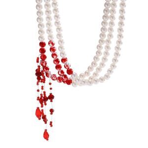 🩸 Goth Vampire Halloween Costume Dripping Blood Pearl Choker Necklace NEW
