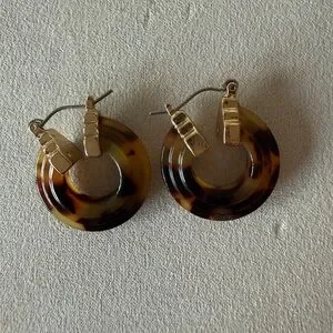 Stylish tortoise shell hoop earrings with gold accents. Perfect for any occasion.