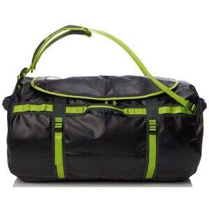 The North Face Base Camp Duffel Bag Backpack is a versatile and durable option for outdoor enthusiasts. With a spacious 95L capacity, this black and neon green bag is perfect for camping trips or extended travels. Made of polyester with nylon padded straps, it provides comfort and support while on the go. The zip closure and sturdy canvas trim add to its functionality, making it a reliable choice for both men and women. Showcasing the iconic The North Face branding, this duffel backpack is a stylish and practical option for anyone needing reliable transportation for their gear. great contdion!!! LIKE NEW.........