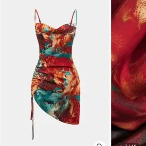 Elevate your style with the Micas vibrant mini dress. Featuring a stunning blend of red, blue, and brown, this dress is perfect for making a bold statement.