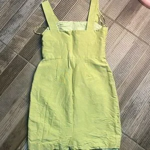 Chic mini dress in light green. Features a fitted silhouette and wide straps. Perfect for a stylish look.