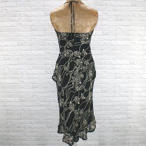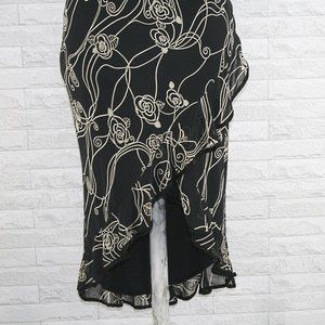 Vintage Y2K RAMPAGE Dress Black Beige Floral Ruffle Cocktail Party Dress Size 3