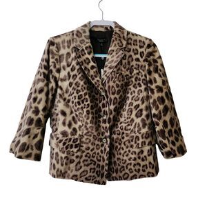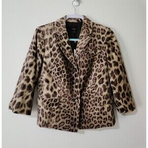 NWT $189 Talbots Womens Fuzzy Animal Print 3/4 Sleeve Jacket beige Brown Size 12