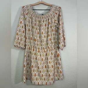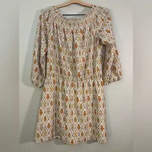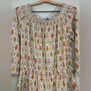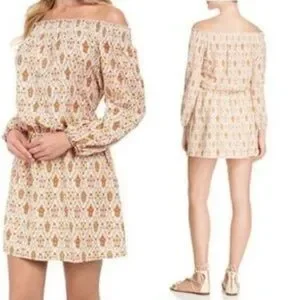 Sanctuary Elle Off Shoulder Boho Orange and Cream Print Dress Size L