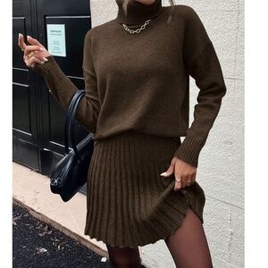 Classic Turtleneck Knit Sweater Textured Mini Skirt Set