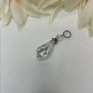 Elegant crystal teardrop pendant with a silver loop. Perfect for necklaces or bracelets.