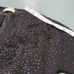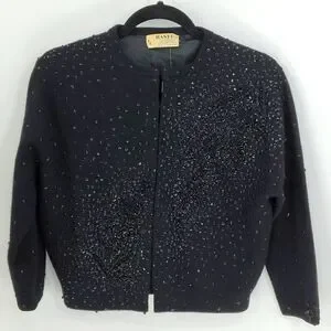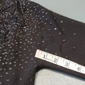 Beautiful vintage black sweater. Pit to pit flat measurement is 15.5"..top to bottom length is 19.5". Good used condition. Consider making a bundle and get an even better offer.