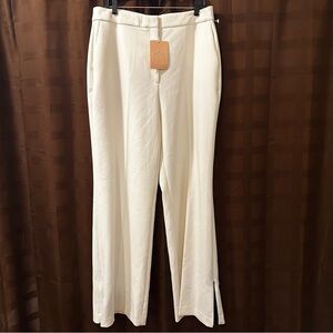 NWT Pearl By Lela Rose Women’s Cream Wide Leg Pants with Contrast Zipper Pleat