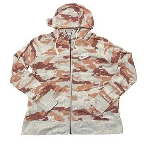 Nike Camo Zip-Up Hoodie Orange Cream Lightweight Athleisure Athletic Women’s XL