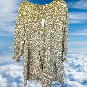 RYLEE + CRU WOMENS SIZE LARGE DITZY FLORAL WOMEN'S HAZEL DRESS GOLD NWT