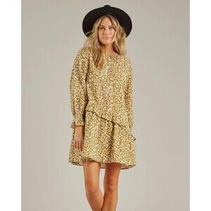 Rylee + Cru Womens Size Large Ditzy Floral Women's Hazel Dress Gold NWT