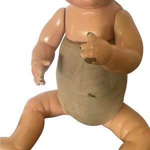 Vintage doll shows wear from age with some paint flaking, crazing, etc (please see photos)