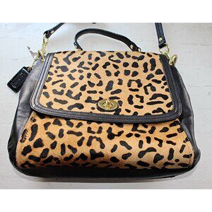 Coach - Park Ocelot Haircalf Leather Flap Satchel in colors Black + Brown Leopard - #F24986. Retail $598.