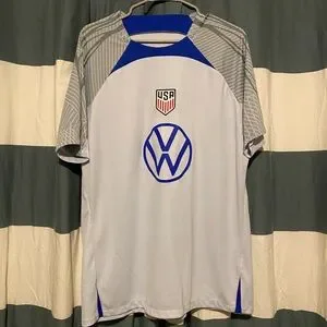 Nike USA soccer jersey with bold blue accents. Lightweight and breathable. Ideal for fans and athletes.