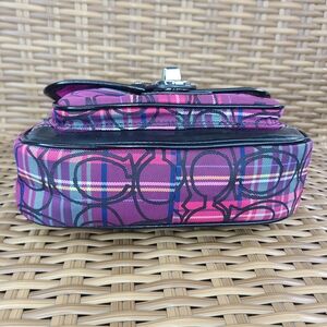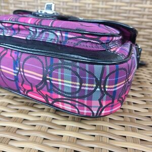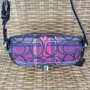 Coach Tartan Plaid Poppy Signature Small Penny Flap Shoulder Bag Purse Purple