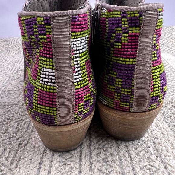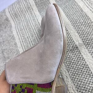 Sam Edelman, Putnam Taupe Suede Booties, Colorful Woven Back, Boho Western Ankle