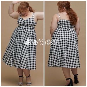 Torrid Retro Chic Black White Gingham Stretch Poplin Midi Skater Swing Dress 3X
