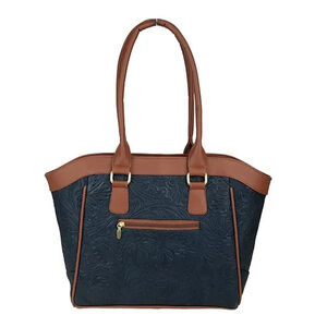 Marine Blue Brown Cross Stitch Embossed Tooled Artisan LEATHER Hobo Bag Purse