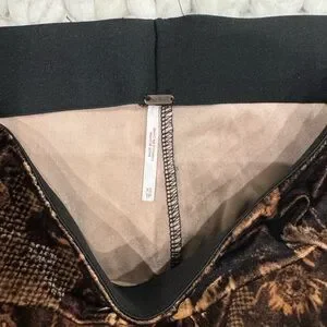 Chic velvet pants with a stylish pattern. Features a comfortable black waistband. Size XS.