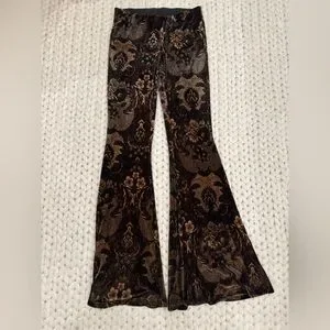 Free People Black and Brown Velvet Pants