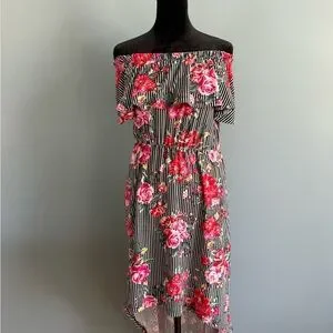 Embrace a casual yet chic look with this Hot Kiss sundress, featuring a playful ruffled off-the-shoulder neckline and a smocked bodice for a flattering fit. The high-low hemline adds a touch of elegance, making it perfect for resort wear. Its vibrant pink hue ensures you stand out in any setting.