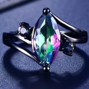Mystic Marquise Cut Rainbow Fire Topaz Ring 14KT Black Gold Filled Band Size