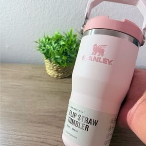 Stylish Stanley tumbler with flip straw. Easy to carry handle. Perfect for hydration on the go.