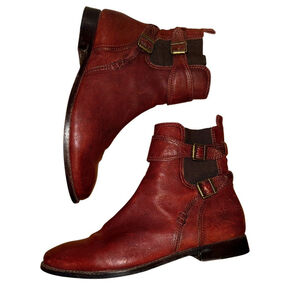 Stylish Frye ankle boots. Rich brown leather. Double buckle detail. Perfect for any occasion.