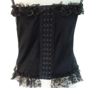 Black & Gold Floral Lace Trim Corset Top Steampunk Gothic Lolita Victorian