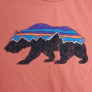 Patagonia Shirt Men's Medium Fitz Roy Bear Short Sleeve Tee Orange