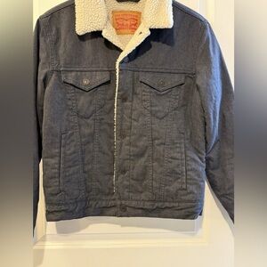 EUC Levi Strauss Cotton Navy Blue Sherpa Winter Trucker Jacket Men’s Small