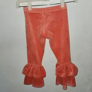 This lovely pair of pants from Matilda Jane is perfect for your little girl's wardrobe. The pants are made of soft velour and come in a beautiful pink color. They have ruffles that add an extra touch of feminine charm to the design. These pants are suitable for various occasions, including travel, party, wedding, and casual wear.