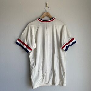 Features: Short sleeves, red, white and blue trim, "Cardinals" spell-out, sporty, athleisure, streetwear